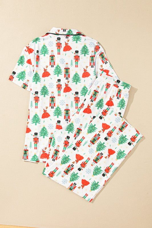 Christmas Trees & Nutcracker Buttoned Pajama Set